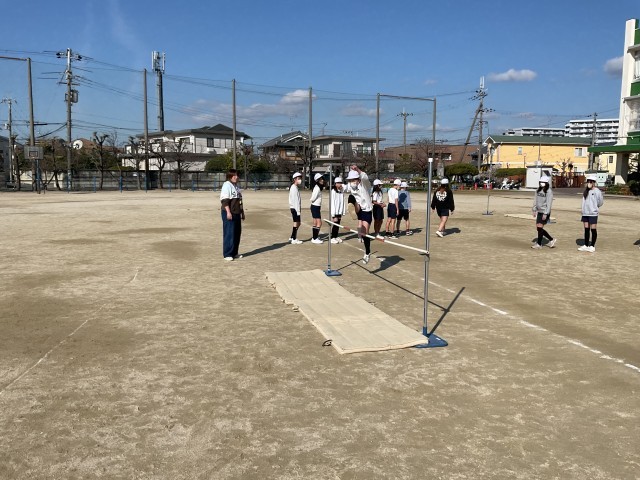 6年生の外体育では、走り高跳びに取り組んでいます。