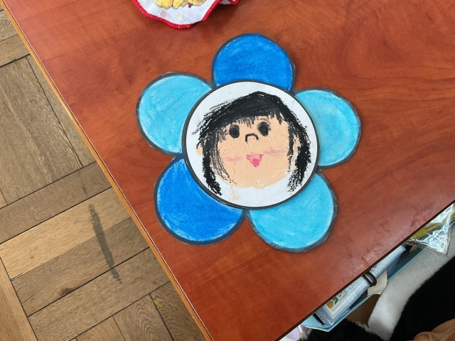 自分のお顔を描き、お花に真ん中に貼り付けます。
