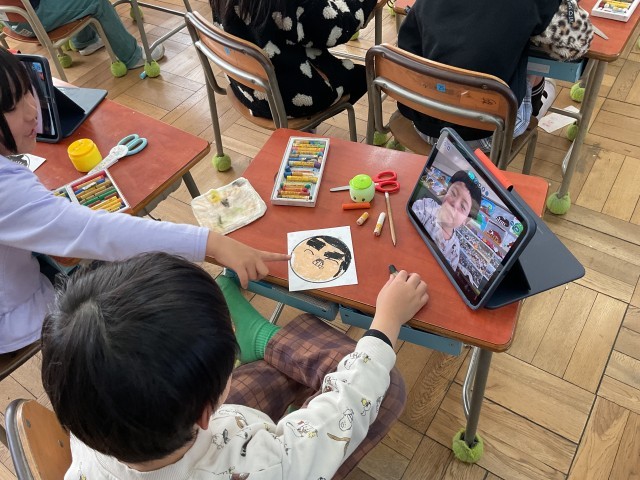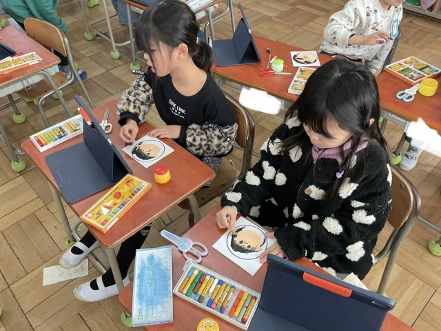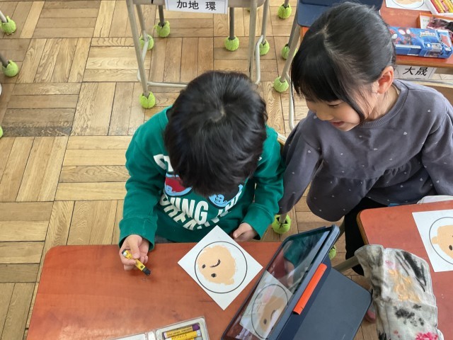 楽しいお顔になるように、一つひとつのパーツを確認しながら描いていきます。
