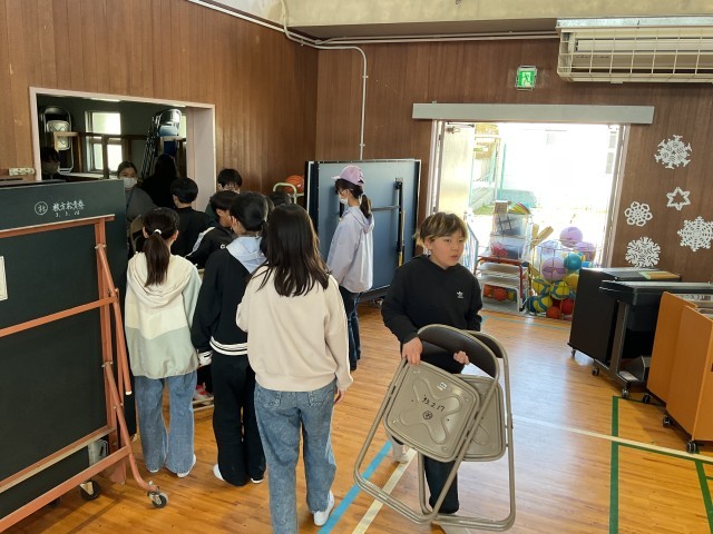明日の卒業式の為に、5時間目に5年生が会場の準備をしてくれました。「最高の黒子」を合言葉に、テキパキ動いてくれました。