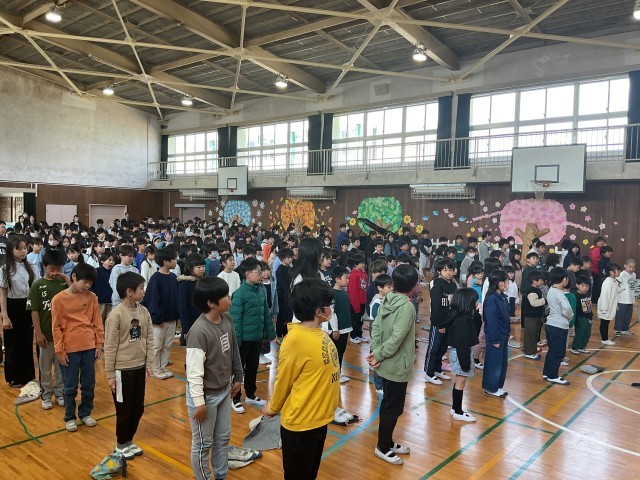 私の方からは、第54回卒業証書授与式で6年生が卒業したこと、3学期の振り返り、学年目標を達成したか等の話をしました。