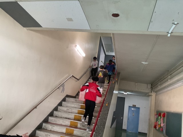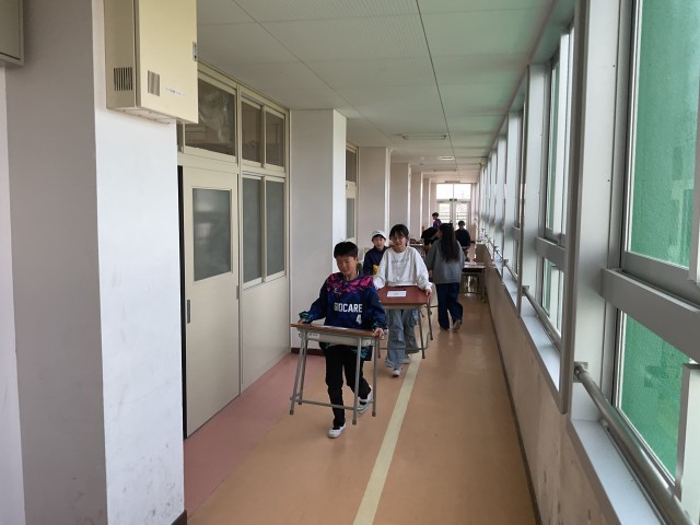 1年生から4年生が下校している時間に、5年生は来年度の教室の準備の為、校舎内の机・椅子を運んでくれました。