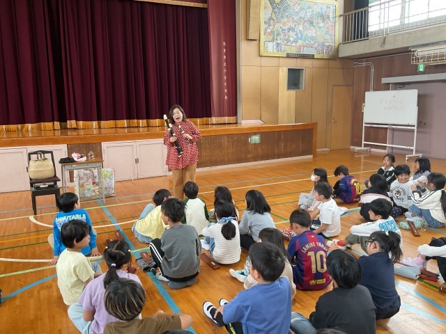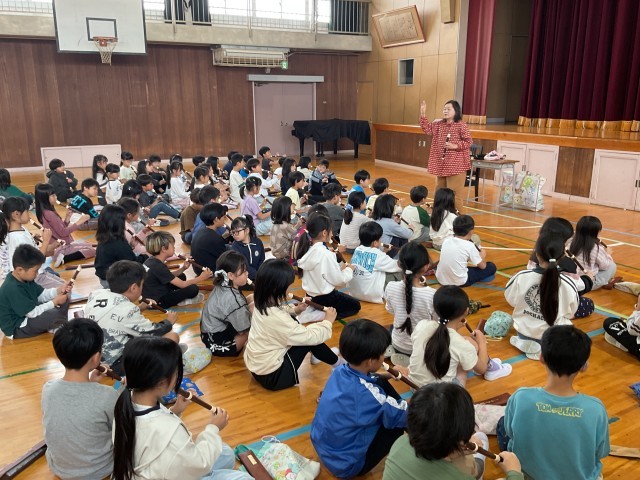 リコーダーの先生に来てもらい、リコーダーの吹きかたを教えてもらいました。