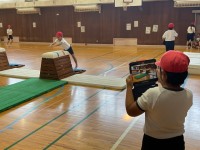 毎年5年生が対象になる「全国体力・運動習慣調査」に取り組んでいました。反復横跳びは、「低い姿勢で頭をできるだけ動かさず足だけを動かして線を踏む」ことが大切です。友達と動きを確認し合いながら、精度を上げていました。
