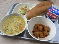 今日の給食はキャベツのソテーです。この時期は冬キャベツが使われていて、葉が固く、...