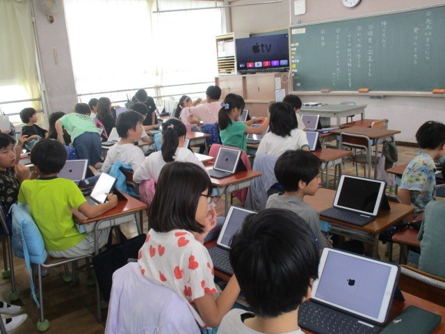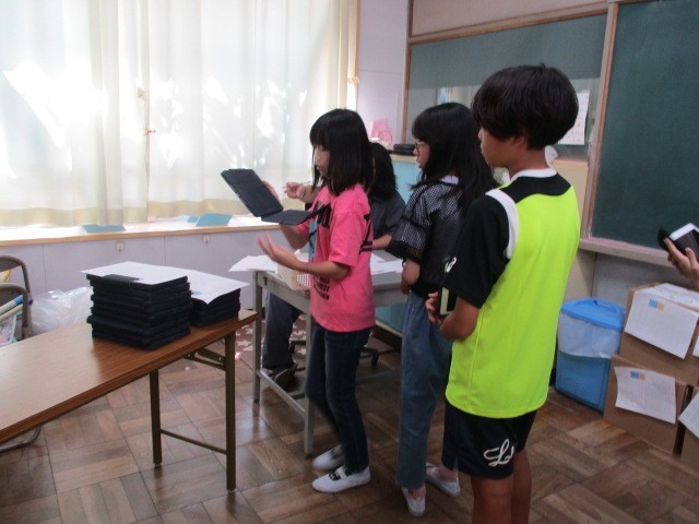 枚方市教育委員会から、学習内容をより深く理解し、豊かな学びにつなげるために、貸与されている「一人一台端末」を新しいものへ更新しました。夏休みの間から職員による準備作業が進められており、当日はスムーズに更新作業が行われたと思います。ご家庭でもデータの保管や充電など、ご協力いただきありがとうございました。子どもたちは教室で端末の初期化作業を行い、これまで使用していたタブレットを返却し、新しいタブレットを受け取りました。新品のタブレットを手にした子どもたちのワクワクした様子が印象的でした。教室に戻ると、高学年の児童たちは自分たちで設定作業を行い、早速学習に活用していました。一人一台端末の導入により、学習の方法や学びの幅が大きく広がったと感じています。これからも端末を大切に使い、より充実した学びにつなげていってほしいと思います。