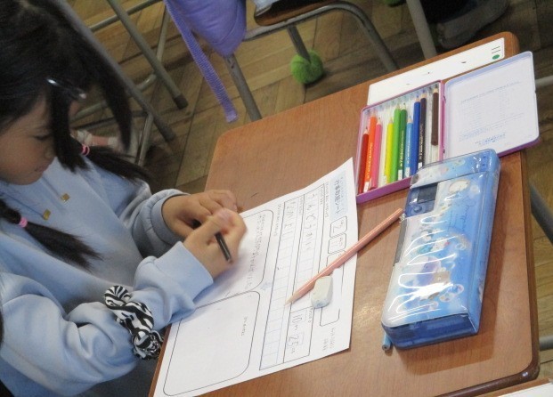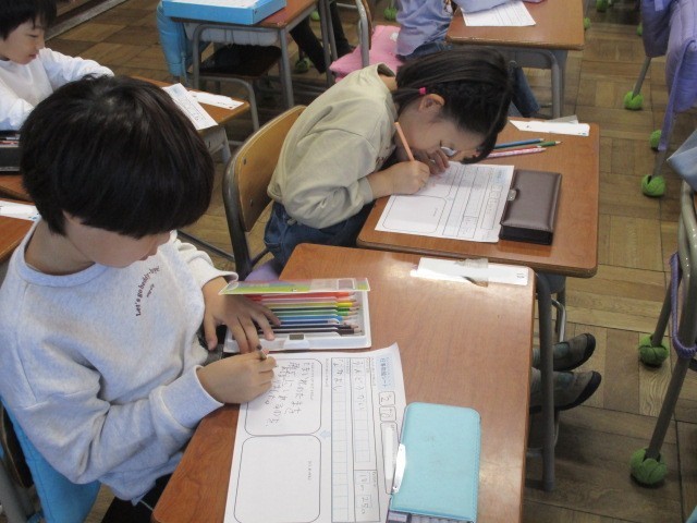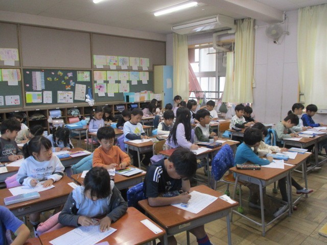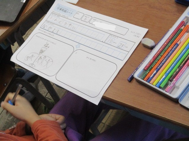 2020年度から全国の小・中・高校で導入されたキャリアパスポート(小学校から高等学校までの取組をつなぎ、今の自分と将来の自分とをつなげる)に対し、枚方市では「枚方市版キャリア・パスポート」を作成し、積極的に取り組んでいます。今回はその中の「行事取組シート」を活用し、運動会の振り返りを行いました。子どもたちは、運動会で頑張ったことを絵や文字で表現し、当日の様子を思い出しながら丁寧に書き込んでいました。自己評価をするだけでなく、周囲との対話を通して自らの変化に気づき、自己理解へとつなげていくことを目指しています。