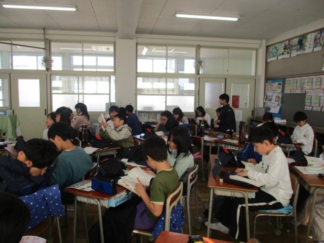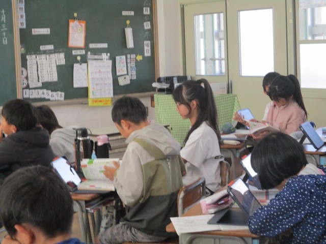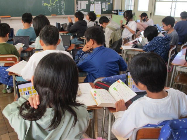 5年生は国語の授業で「和の文化を発信しよう」という単元に取り組み、ポスター作りを行っています。 表現をより豊かにするために「類語辞典」を活用し、語彙を増やす工夫をしました。 子どもたちは新しく出会う言葉に興味を持ち、楽しみながら学習を進めている様子がうかがえました。