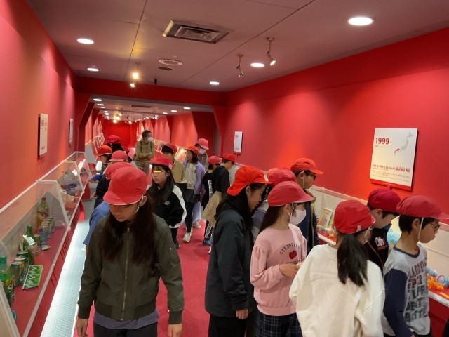 午前中は、コカ・コーラ京都工場を見学させていただきました。工場内の製造過程について、ガイドさんの説明を聞きながら、子どもたちは興味津々な様子で見学していました。チャレンジコーナーでは、さまざまな体験に積極的に挑戦する姿が見られました。どのコーナーにも生き生きと参加しており、その姿がとても印象的でした。最後にサプライズプレゼントとして、一人一本好きな飲み物をいただきました。ありがとうございました。