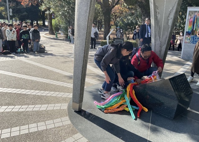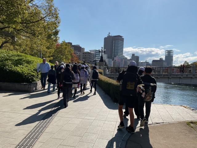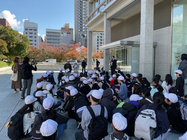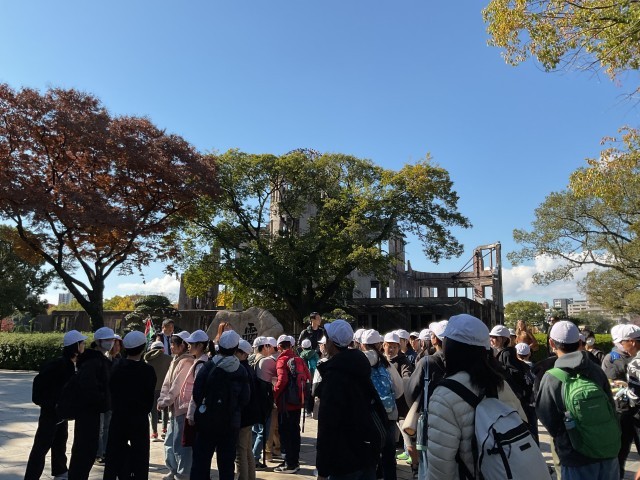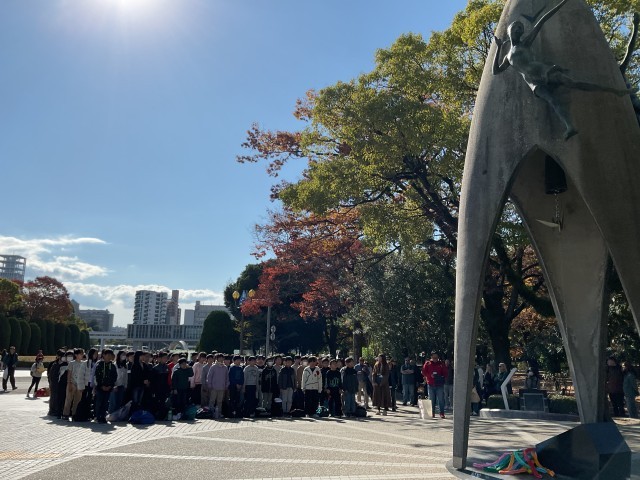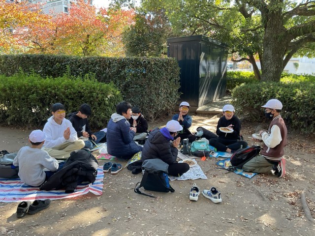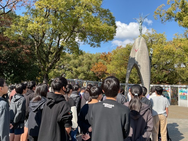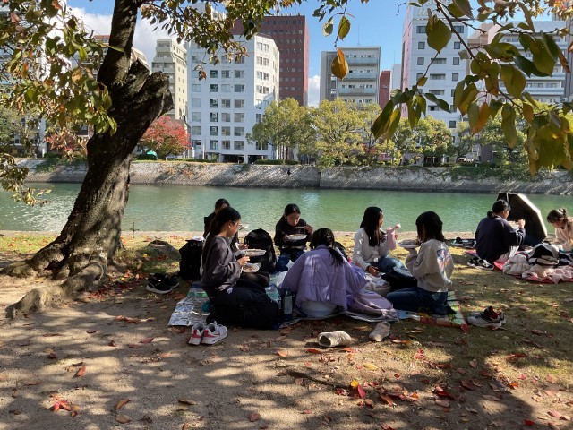 平和記念公園で平和セレモニーを行い、全校児童で折った千羽鶴を捧げてきました。平和の祈りが届きますように。昼食にお好み焼きをいただきました。みんな美味しそうに食べていました。