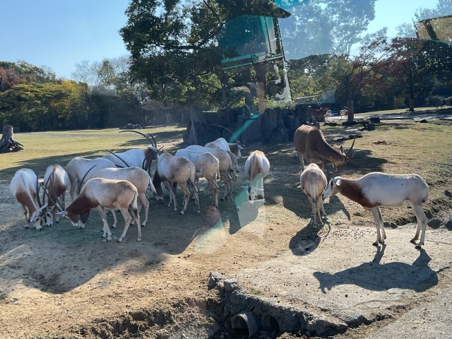姫路セントラルパークでは、まずドライブスルーサファリに行きました。バスの中から、沢山の動物を近くで見ることができました。子どもたちも身を乗り出して見ていました。(動物の写真を沢山載せています)