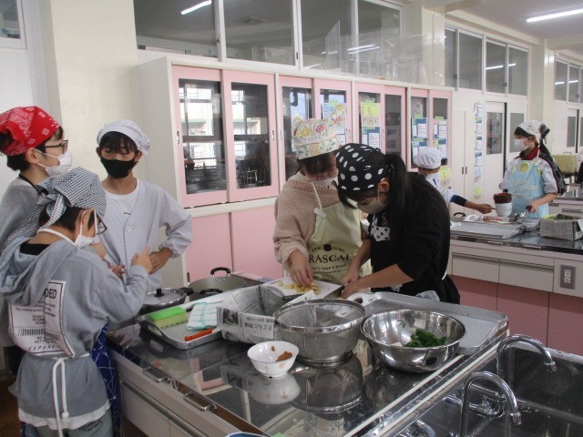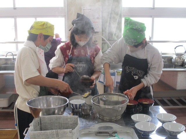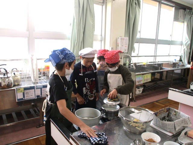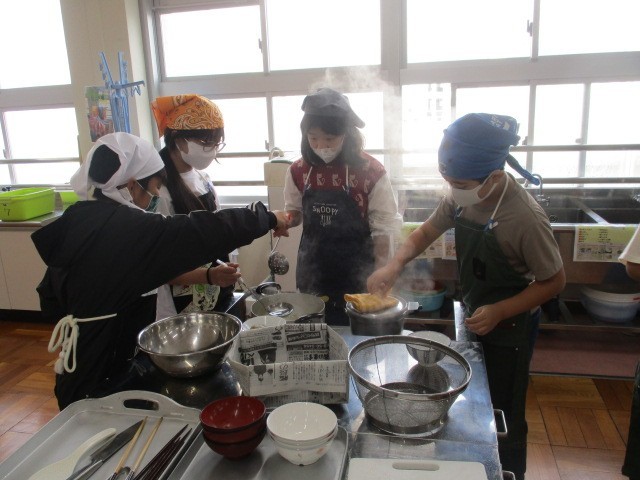 5年生は家庭科の授業で「ごはんと味噌汁」の調理実習に取り組みました。味噌汁は、まずだしを取るところから始め、具材を切って丁寧に調理しました。ご飯はお鍋で炊き、水の量や火加減に気を配りながら、ふっくらと炊き上げることができました。子どもたちは真剣に取り組みながらも楽しそうで、完成した料理を味わうと達成感いっぱいの表情を見せていました。ぜひご家庭でも挑戦していただき、学んだことを活かしてほしいと思います。