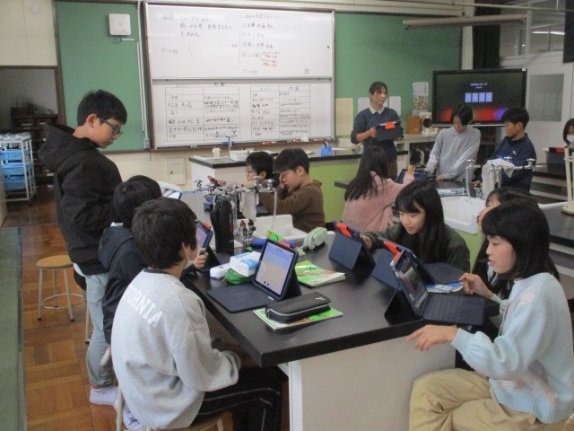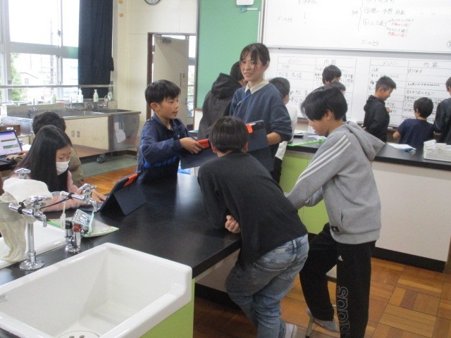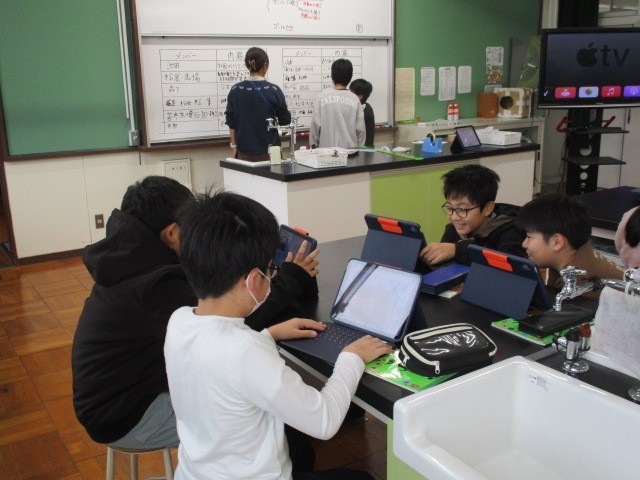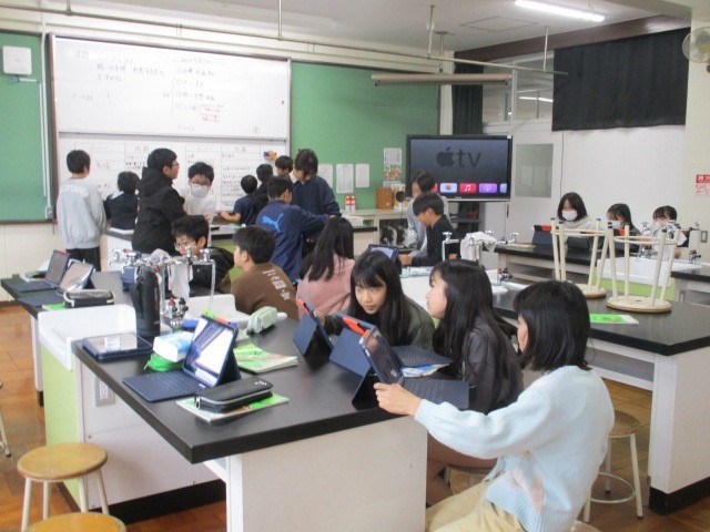 5年生は理科で探求学習に取り組んでいます。これまで学んできた内容の中から自分たちで課題を見つけ、その課題に対して「問い」と「予想」を立てました。グループごとに分かれて、その問いをさらに深めていきます。子どもたちは、自分が興味を持ったテーマに向き合いながら、とても生き生きと学習を進めています。