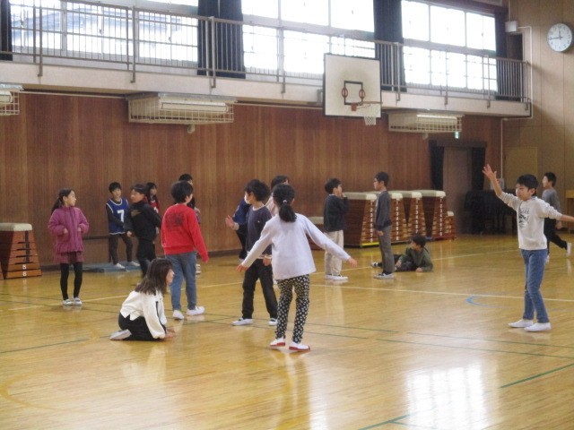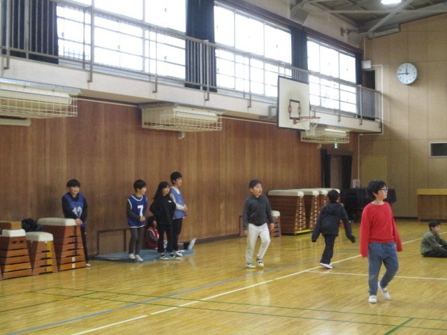終業式まであと2日となり、学習のまとめをしたり、クラスで楽しく過ごしたりする日々となりました。4年生は学活の時間に体育館で「みんなあそび」を行いました。写真は陣取りの様子です。子どもたちは自分たちでルールを考え、みんなが楽しめるように工夫しながら活動していました。