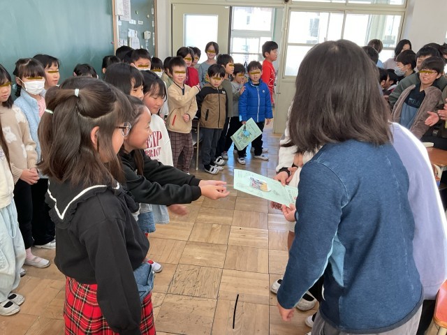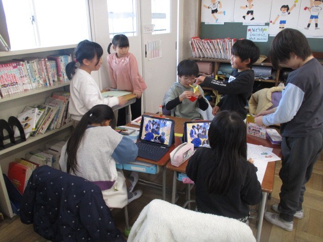 2年生は国語の「ありがとうを伝えよう」の学習で、5年生に向けて感謝の気持ちを手紙に書いて伝える活動を行いました。5年生は、2年生と一緒に遊ぶ遊びを考えてくれたり、ペア学年としてさまざまな場面でお世話になってきました。子どもたちは緊張しながらも、グループごとにお手紙を準備し、グループで考えた言葉で、しっかりと感謝を伝えることができました。