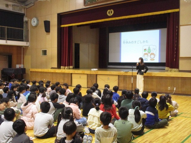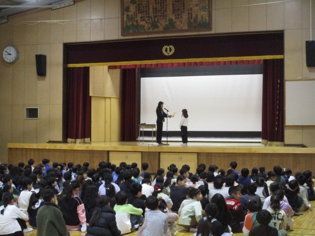 2学期の終業式を行いました。長い2学期の間、子どもたちはたくさんのことを学び、多くの行事を通して大きく成長しました。本当によく頑張りました。終業式では、2学期に受賞した表彰を行い、あわせて冬休みの過ごし方についてのお話もありました。式の後には代表委員会から、3学期に南小で取り組む校内の「新春俳句活動」と、校外へ応募する「お〜いお茶新俳句大賞(団体応募)」について紹介がありました。楠葉南小はこれまでの取り組みが評価され、「団体応募賞」をいただいています。今年度もたくさんの応募を楽しみにしています。