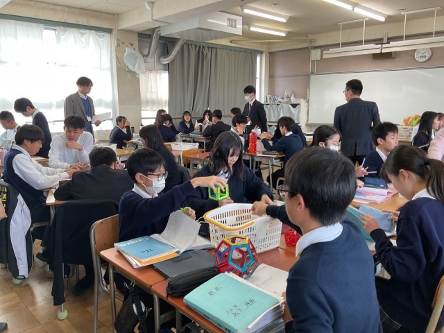 先日行われた中学校区【小中合同研究授業・小中合同部会】の様子です。研究テーマを「学校でしかできない『学ぶ喜び』をすべての生徒に 〜生徒が『感じる・考える・行動する』ことができるギミックを〜」とし、取り組んでいます。(※ここでのギミックとは「間接的な意識付け」を指します。)どの授業でも、卒業生たちが生き生きと学ぶ姿が印象的でした。研究授業後の部会でも、活発な意見交流が見られました。今後も中学校区で連携し、小中一貫で子どもたちを育てていきたいと考えています。