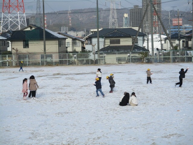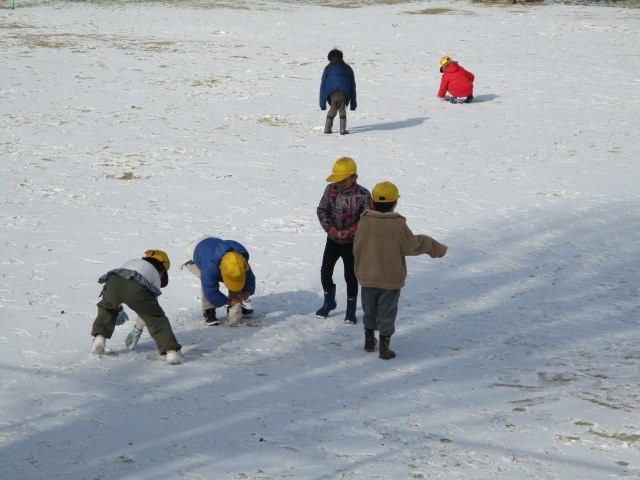 週末からの寒波の影響で、校庭には雪が積もりました。子どもたちは大喜びで、朝から元気に雪遊びをする姿が見られました。インフルエンザの流行が心配される時期ではありますが、校庭を走り回る子どもたちの姿に、こちらも元気をもらいます。