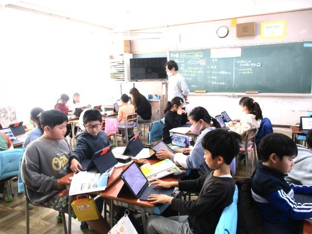 3年生は社会科で枚方市について調べ学習を行いました。公共施設や商業施設、電車などの歴史や現在の様子、利用のされ方について調べ、まとめたことを発表しました。身近な枚方市のことを、子どもたちが興味をもって意欲的に調べている姿がとても印象的でした。