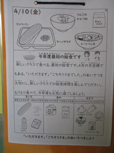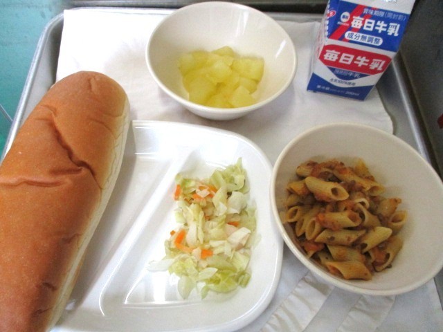 給食が始まりました 公開日 2026/04/10 更新日 2026/04/10 給食 楽しみにしていた給食が始まりました。今日のメニューは「ミートペンネ・ラハノサラダ・りんごの缶詰・コッペパン・牛乳」でした。子どもたちはたくさんおかわりをして、とても美味しそうに食べていました。その姿がとても印象的でした。調理員さんも昨年度と同じメンバーで、今年度も変わらず心を込めて作ってくださっています。1年間どうぞよろしくお願いいたします。 +7 いいね(0)