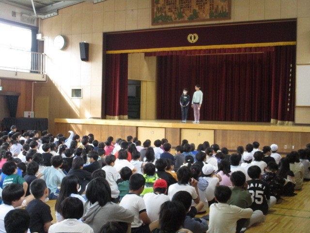今年度初めての児童集会を行いました。司会を務めた代表委員会のみなさんは、練習やリハーサルを重ねて本番に臨み、スムーズな進行をしてくれました。みんなで校歌を歌ったあと、校長先生のお話、代表委員会による学校スローガンの発表、そして給食・放送・掲示委員会からの発表が続きました。6年生の委員長・副委員長さんが堂々と発表する姿はとても頼もしく、最上級生として学校をしっかり引っ張ってくれていることを感じました。集会が終わった後には、司会を担当した代表委員会のみんなで振り返りを行い、次の集会に向けて改善点を話し合いました。こうした積み重ねが、よりよい学校づくりにつながっていきます。