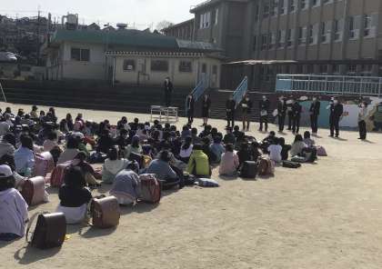 赴任式では、校長先生から樟葉南小を去られた先生の紹介と4月から新しく来られた先生の紹介があり、新しく来られた先生から子どもたちに挨拶がありました。最後に担任の先生の発表を行いました。