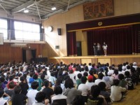 今日は、体育館で「tennis egg」さんによる「テニス教室」が開かれました。