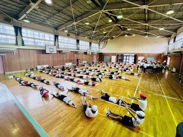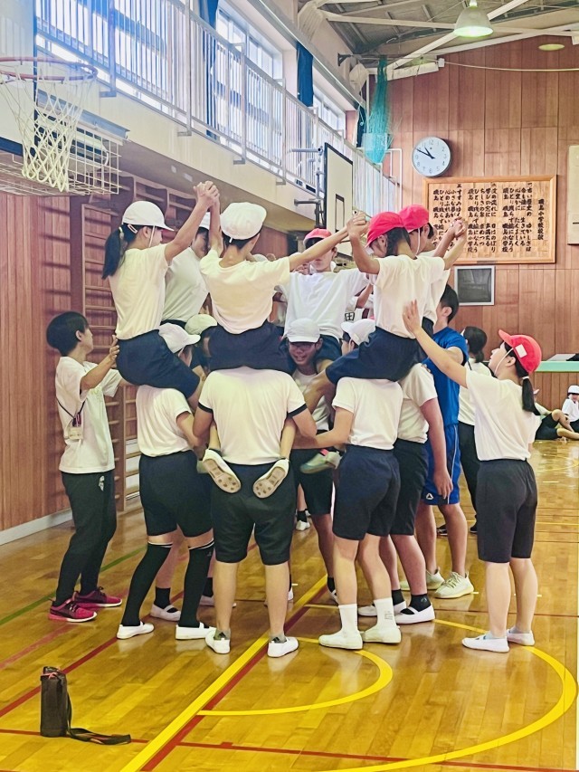 5年生と6年生の団体演技練習も佳境に入ってきました。今日は少し難易度の高い練習にも挑戦し、上手くいくと歓声が上がっていました。団体演技は自分以外の仲間の動きにも気を配り、動きを合わせていくことが大切です。このような経験を通して協力する力を伸ばし、日常生活にも反映していけると素晴らしいですね。