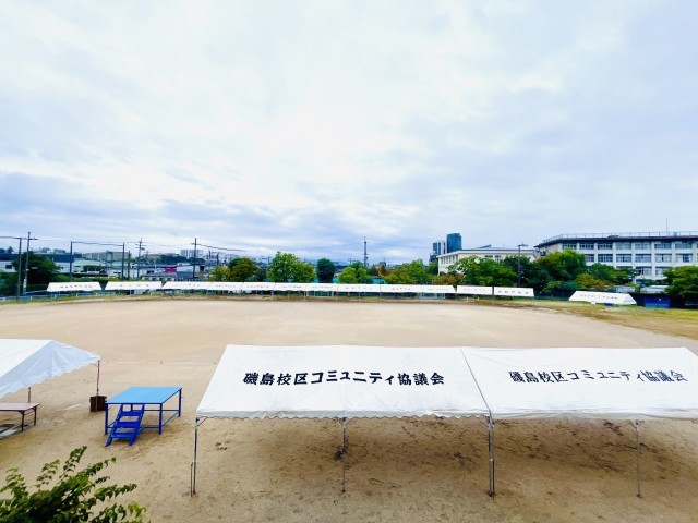 今年度も運動会に先立ち、校区コミュニティ協議会、各自治会の皆様のご協力で日除けのテントを設置していただきました。枚方市内でも毎年ここまでしていただける学校は他にはなく、職員一同感謝しております。これで子どもたちも健康や安全に十分配慮しつつ、全力で練習に取り組むことができます。運動会当日、その成果を十分に発揮できるよう頑張っていますので、引き続きのご支援をお願いいたします。
