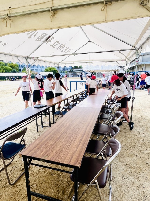 午後からは明日の運動会に向けて、会場作りの仕上げに取り組みました。自分たちで考え、テキパキ行動する姿が非常に頼もしかったです。準備後にみんなに「明日は今までの練習の成果をしっかり見せてくれますか?」と問いかけると、揃った声で元気な返事が返ってきました。明日の本番が本当に楽しみです。