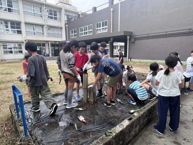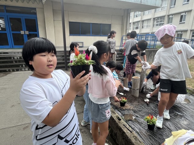 4年生はPBL「ニコニコバンブープロジェクト」の一環で、竹を使った花壇作りに取り組みました。長短の竹を組み合わせて立体的な花壇を作るようです。一生懸命作っていたので、行事や参観で来校される際には、ぜひ見てあげてください。