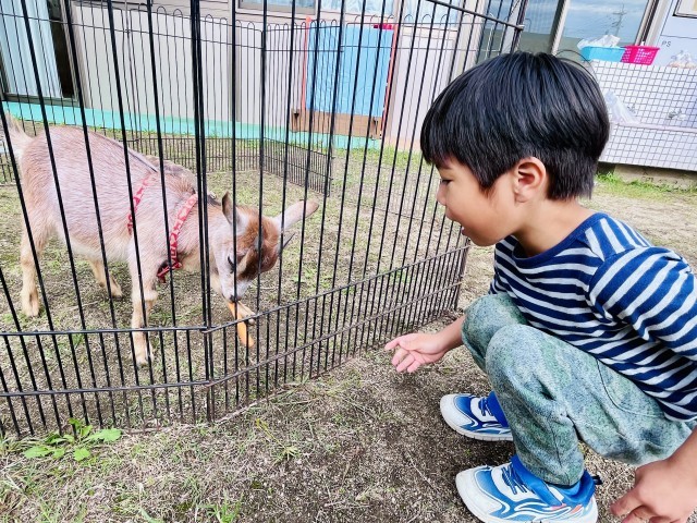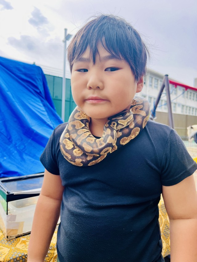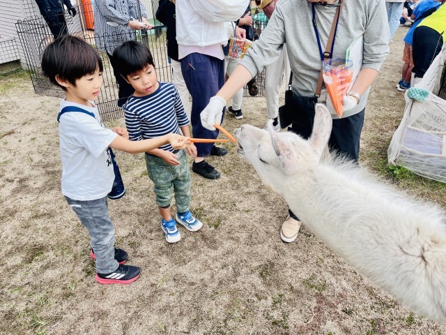 今日はあおば学級の児童が学校のお隣にある市立ひらかた子ども発達支援センターの移動動物園に招待していただきました。昨年度から引き続いての交流になります。最初は大きな動物に少し戸惑った様子でしたが、徐々に慣れてたくさん触れ合っていました。
