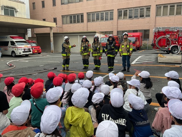 3年消防署見学(1) 公開日 2025/10/21 更新日 2025/10/21 学校の様子 3年生が枚方消防署に行きました。めあては「よく見て、よく聞いて、消防署のお仕事についての知識を深めよう」です。最初に、渚出張所で働く消防士さんたちの訓練を見学させていただきました。 いいね(0)