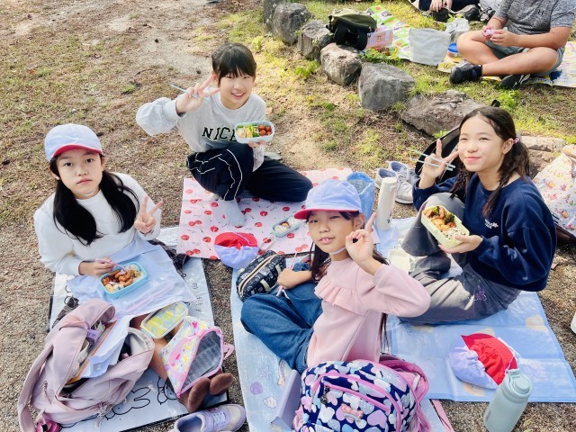 みんな大好物がたくさん入っているお弁当にご満悦。いい笑顔です。