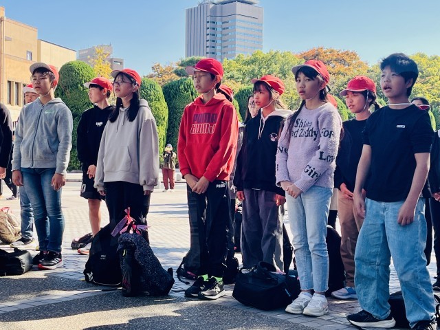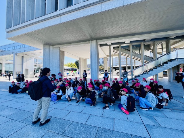 無事セレモニーを終え、資料館前に移動しました。小グループに分かれて見学していきます。