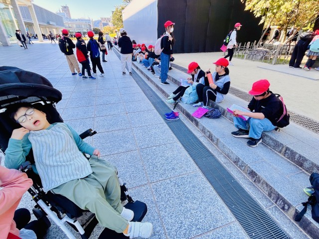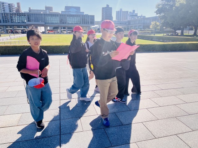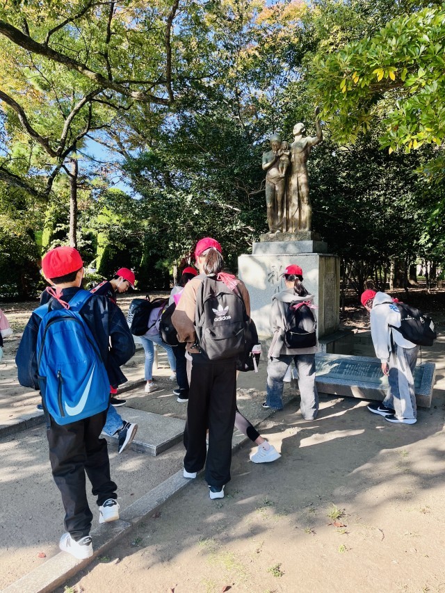 予定していた碑を全部巡った班は平和記念公園内を散策して、さらに碑を探していました。決まったことをやるだけではなく、学びが探究につながりつつあります。
