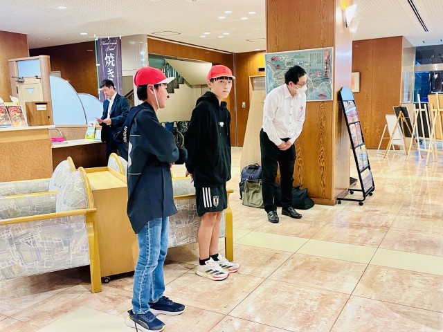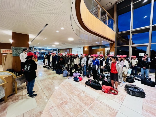 ほぼ予定通り宿に到着し、入館式を行いました。一旦各部屋に入った後、全員で夕食をとります。