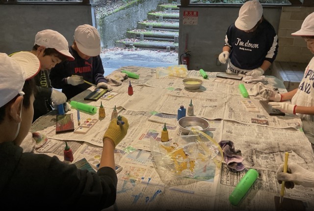 1組さんは、焼き板作りからスタートです。