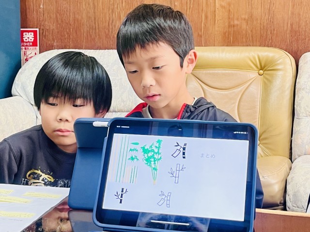 今日は4−1の児童が自分たちの学びの中間発表をするために校長室を訪れました。放置竹林の竹を使用したおもちゃについてiPadを用いて分かりやすく発表するとともに、何点か質問をしました。最後には「プラスチックではなく竹素材の方がいいんだ」という付加価値のアピールポイントについて、更に学びを掘り下げるように宿題を出したので、今後の展開がますます楽しみです。