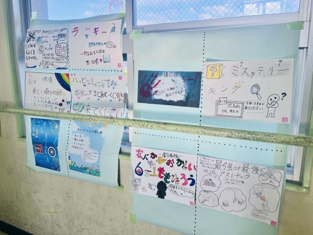今日は待ちに待った児童会まつり。みんな朝からウキウキで登校してきました。朝から児童が放送で呼びかけ、各教室で最終の準備確認をしています。