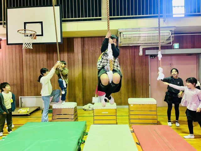 6年2組「最強 of 最強アスレチック」の様子です。参加者が怪我をしないよう、手厚いサポートが光っていました。準備片付けも大変でしたが、みんなのために頑張りました。