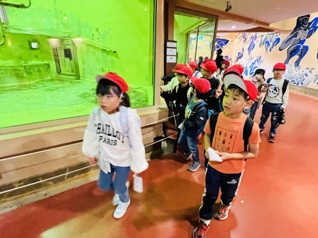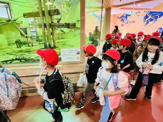 食後にはクラスでいろいろな動物を見てまわります。愛想のいい動物たちが大人気でした。