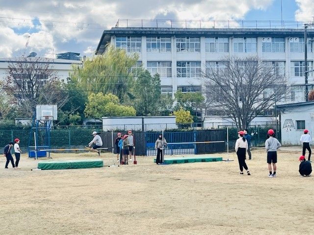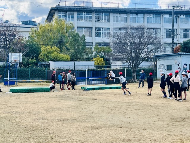 6年生は体育で走り高跳びに挑戦しています。走り高跳びは跳躍力(筋力)はもちろんのこと、踏み切りの位置やタイミング、その後の身体の動作が一体とならないとうまく跳べません。助走の距離やスタート位置を調整したりしながら試行錯誤を繰り返していました。