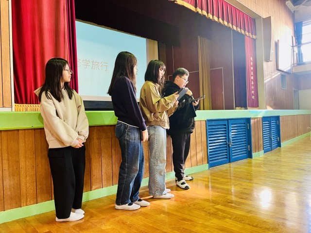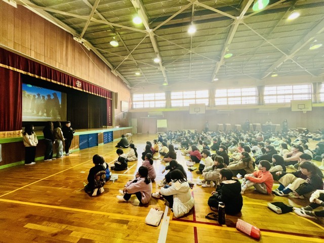 児童集会で6年生の代表から平和学習の報告がありました。全校児童で協力して作成した折り鶴を捧げたことや、資料館で学んだこと、平和の尊さに改めて気づいたことなど、動画資料を用いてわかりやすく説明してくれました。自分たちだけの修学旅行ではなく、学校の代表として行ってきたのだなということがよく伝わってきました。来年以降も同じように意識を高めていけるといいですね。
