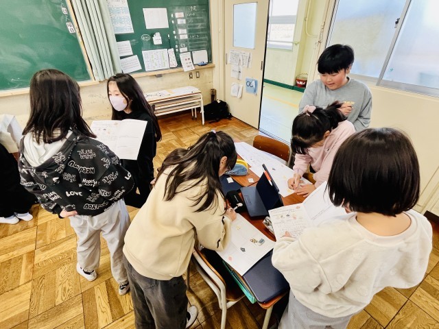 4年生では桜丘北小学校の栄養教諭の先生をお招きして食育の授業を実施しました。「おせち」が題材だったので、季節感もあり、みんなにとって親しみやすい内容でした。それぞれの料理の由来やいいところを調べて、友達と楽しそうに交流していました。
