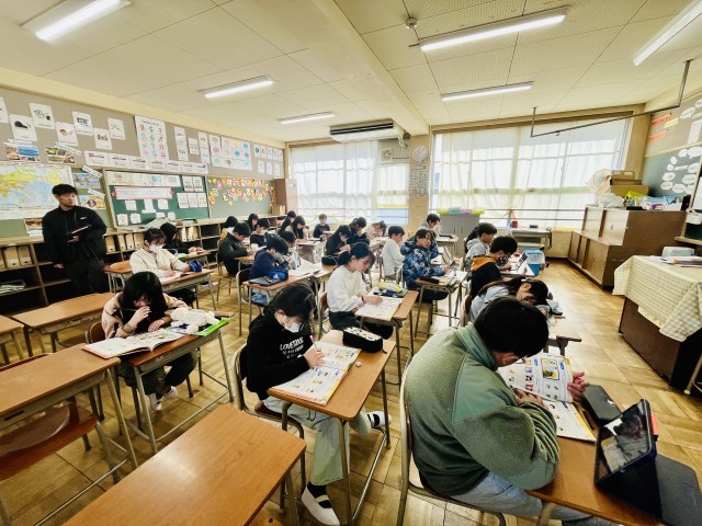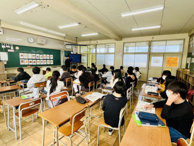 5年生の外国語の授業で人に何かを勧める表現What would you like? I’d like~.を用いたコミュニケーションを学習していました。基礎表現を覚えるだけではなく使いこなしたり、デジタル教科書の音声を聞いて会話の中から必要な情報をつかむ練習などにも取り組んでいました。小学校段階で慣れ親しむ英語表現はずいぶん高いレベルになってきています。