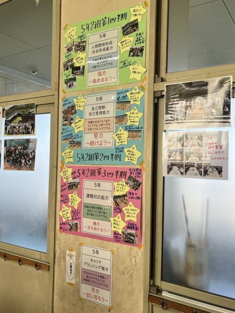 今年度、このような取組を進めていていいなと思ったのは先生たちが切磋琢磨する姿が今まで以上に頻繁に見られるようになったことです。5年生の研究授業を参観に来た1年生の先生が熱心に掲示物に見入っていました。ただその場に居るのではなく、一つでも多くのことを学び取って日頃の教育活動に還元しようとする熱意を感じたことと、教職員全体でめざすゴールを共有できたことで、取組の系統性が可視化して学びやすくなったことを感じました。「よき指導者はよき学び手であれ」の言葉通り、先生方も日々進歩しています。