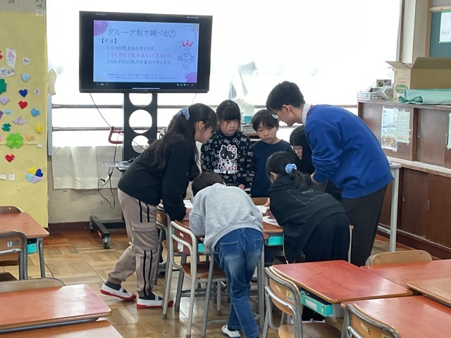 それぞれ調べ学習をした後、同じ視点のお友だちと情報共有です。