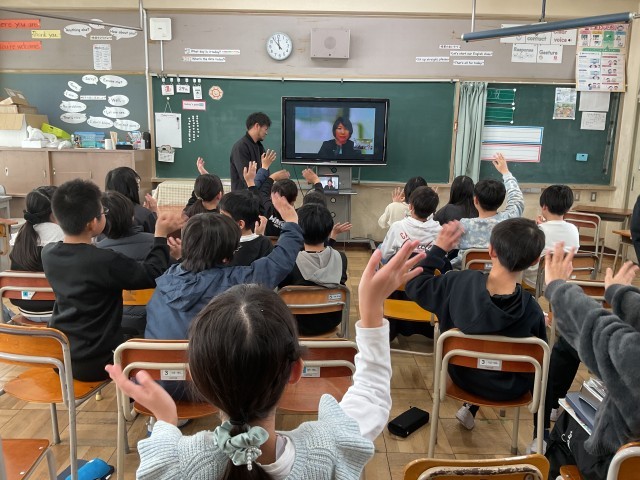 5年生が再びプノンペン日本人学校とのオンライン交流に挑みました。前回は伝えたいことがほとんど言えなかったそうなので、今回はチャレンジに燃えていて緊張感が伝わってきました。前回よりも入念に準備したこともあり、自信をもって交流する姿が印象的でした。