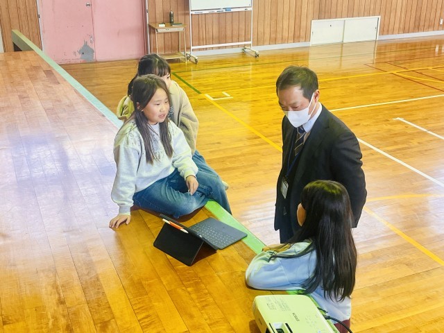 今週末に教育委員会が主催するGIGAフェス2025に本校の4年生児童3名が出場します。今日は放課後に指導主事が来校され、発表の練習風景を参観されたり、子どもたちに直接アドバイスしてくれたりしました。4年生でずっと取り組んできた放置竹林問題をどれだけ発信できるのか?3名の児童は磯島小学校を代表して日曜日に総合文化芸術センターの大きな舞台に立ちます。
